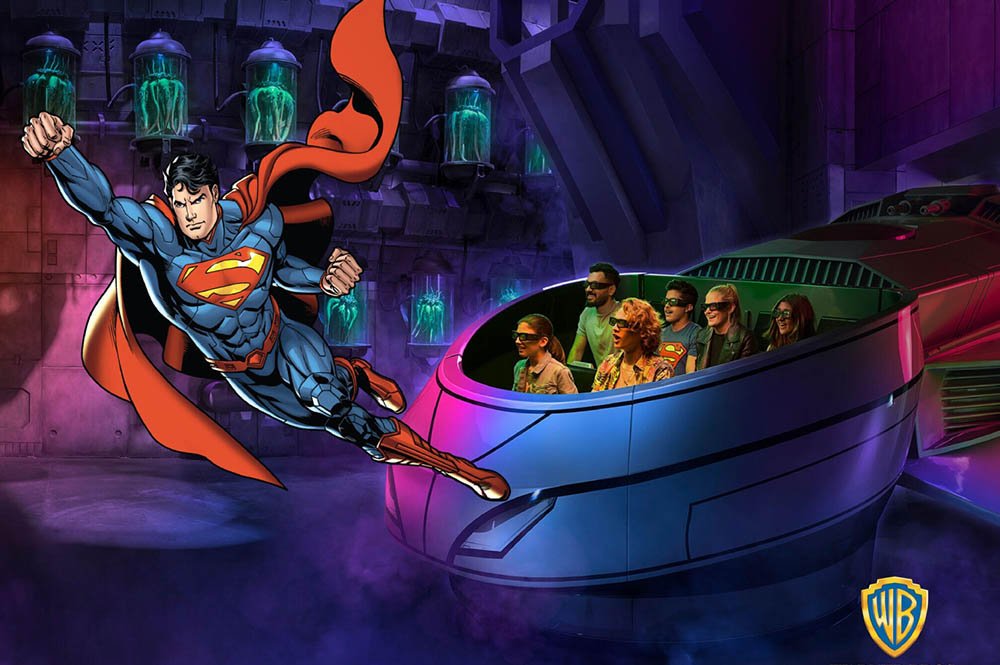 - Warner Bros Plaza, Gotham City, Metropolis, Cartoon Junction, Bedrock, and Dynamite Gulch.