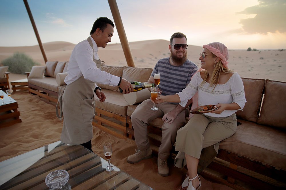 Up next will be the camel riding experience that will last for approximately 5 to 10 minutes. However, someone who wants to experience culture and relaxation must go for sandboarding. Alternatively, you can paint your hand with henna tattoos (for women only). Feel thirsty in between? Don’t worry everyone will get complimentary water and soft drinks. In addition, a special corner for shisha-smoking lovers will be available at the campsite.