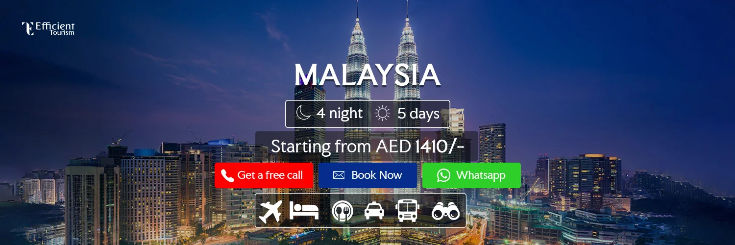 Rejuvenate yourself on a sensory journey to Asia’s heart with Malaysia Tour Packages. From scenic mountains and lush green forests to pristine beaches, Malaysia has it all. Visit Efficient Tourism to book Malaysia Tour Packages from Dubai to Asia’s cultural melting pot. Another reason for flying to Malaysia is its delicious cuisine. The mouth-melting dishes you get everywhere are truly worth melting for. Our Malaysia holiday packages from UAE start from AED 1410 per person. We offer the best all-inclusive packages with luxurious accommodation, hotel pickup and drop-off, guided sightseeing activities, etc. Contact our team to book Malaysia travel packages and plan your dream holiday!
