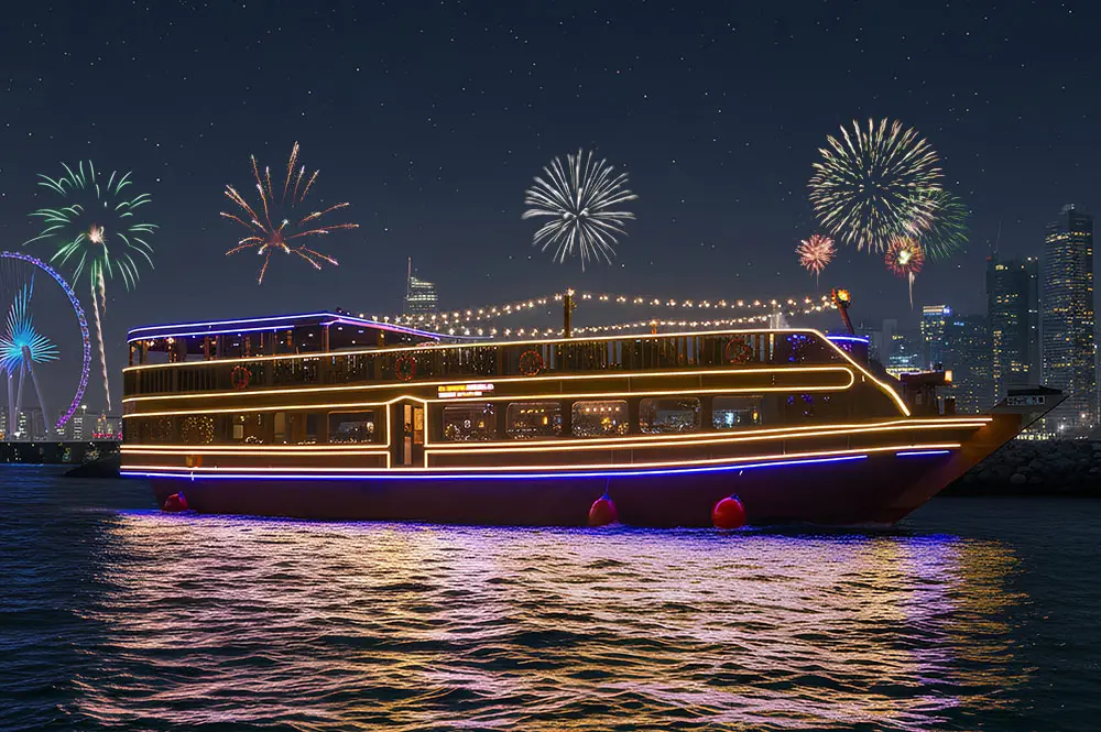 For New Year celebrations, other options are also available such as New Year Premium Dinner Cruise Dubai Marina, New Year Party Overnight Desert Safari, and New Year VIP Dinner Cruise Marina.